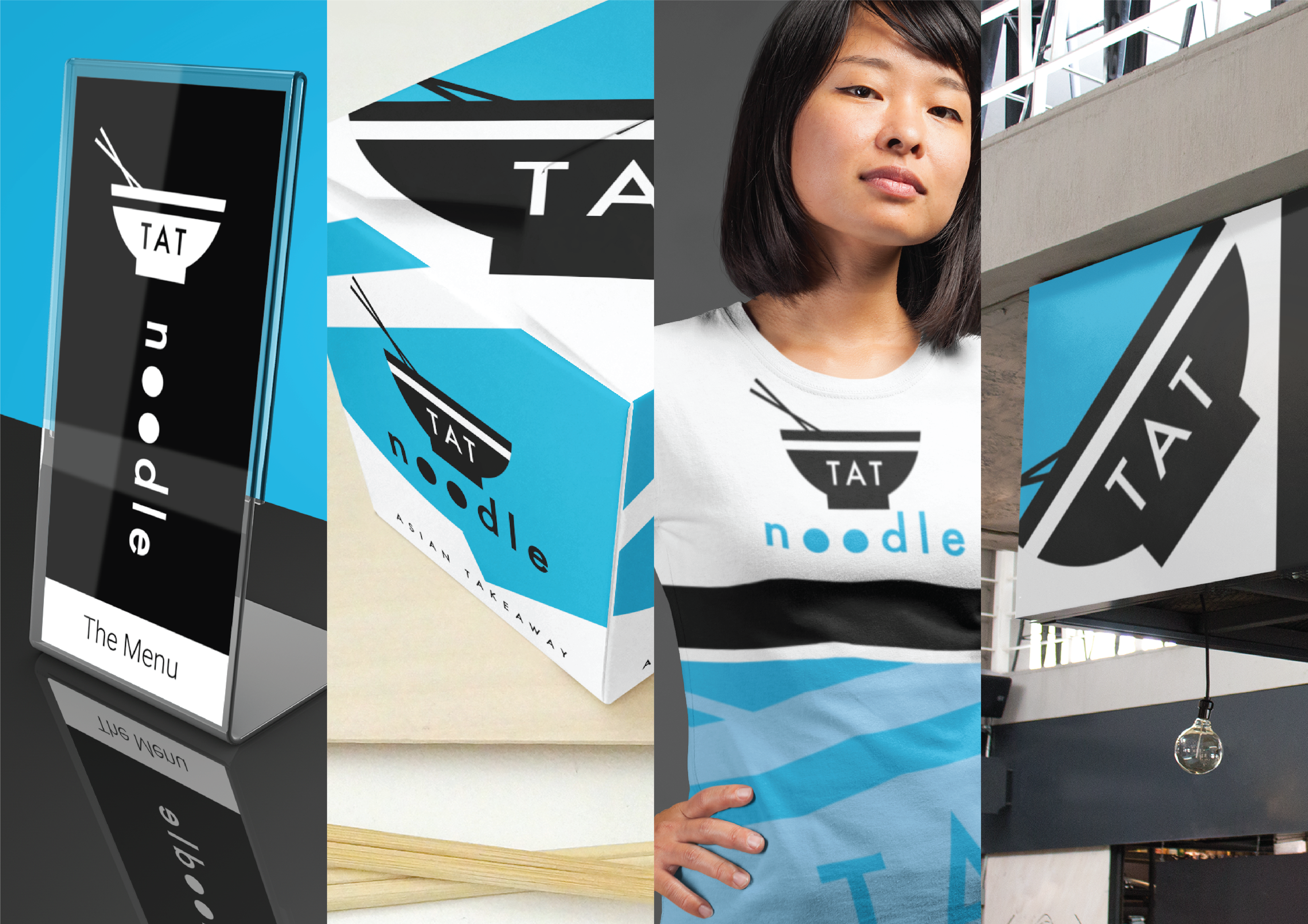 The final design incorporated a minimalist noodle bowl with chopsticks which would also be easily identified when used alone, while the text is a clean san-serif font adapted to make use of negative space on the two letter O's to abstractly represent noodle strands.