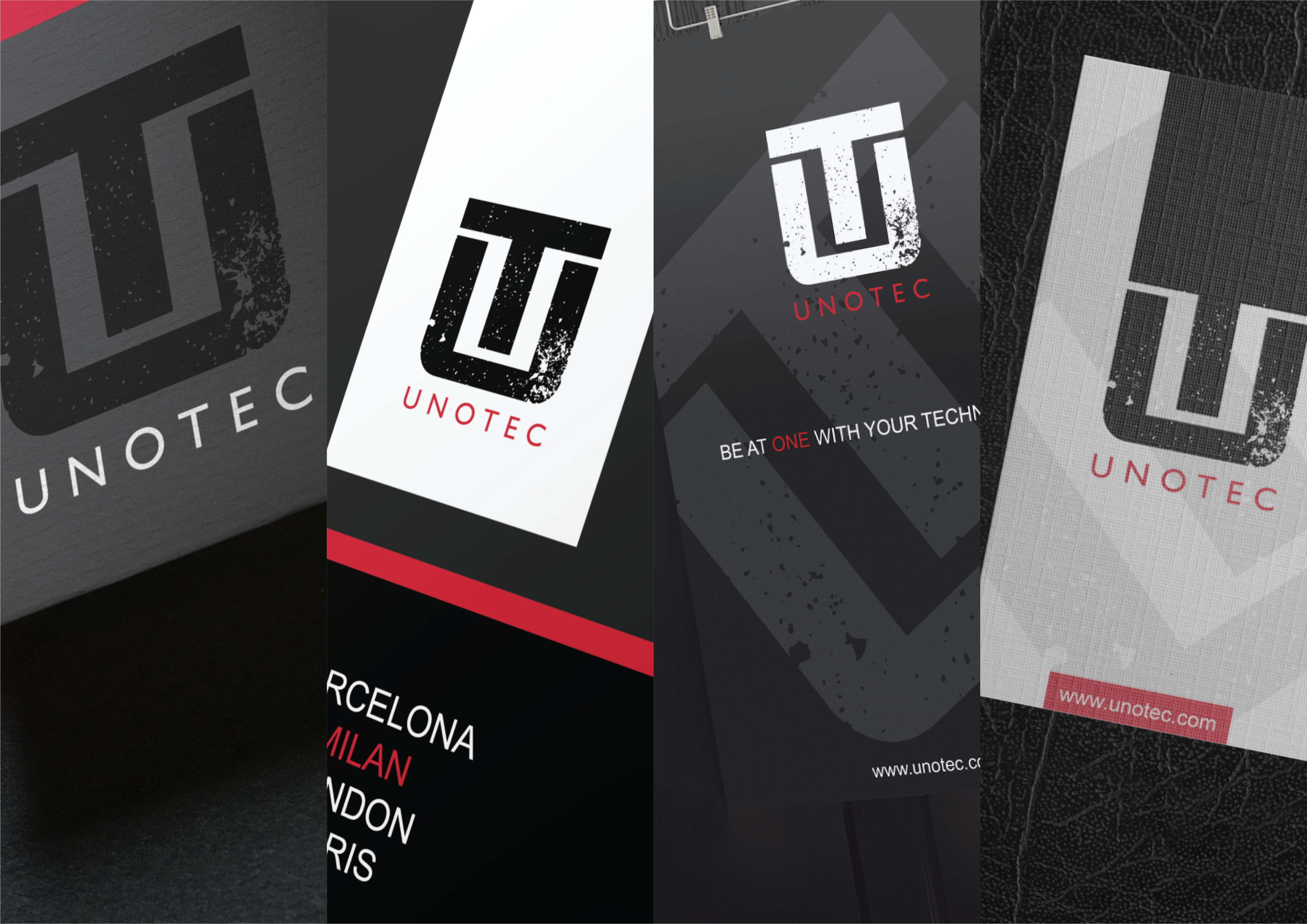 Unotec Technology desired a clean and simple approach to its brand identity. The requirement was to deliver a look that spoke tech but also wasn’t too obvious. We went with a futuristic logo style with a touch of grunge and a classic sans serif font complemented by a simple black, white, and red colour palette.